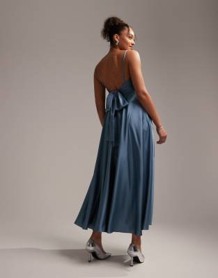 ASOS DESIGN Bridesmaid satin cowl neck maxi dress with full skirt in dusky blue