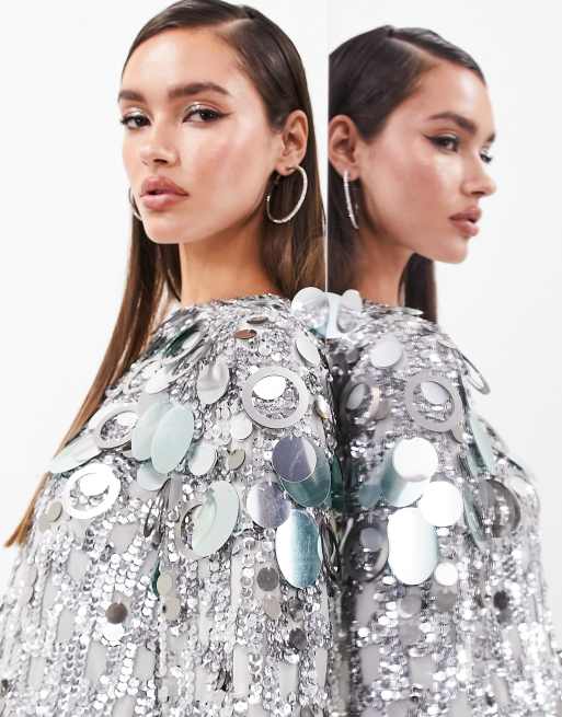 Asos sale loose dresses, ASOS EDITION stacked multi sequin loose fit mini dress in grey sale