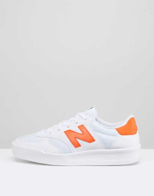 New Balance 300 Court Trainers In White And Neon Orange