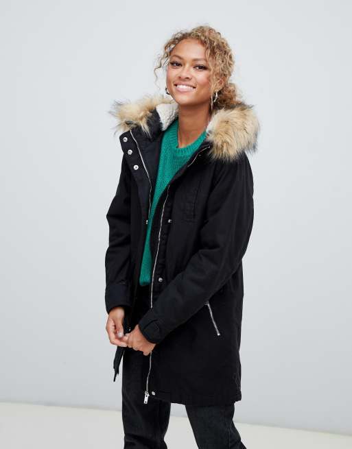 Asos new sale look parka, New Look Parka With Faux Fur Hood In Brown sale
