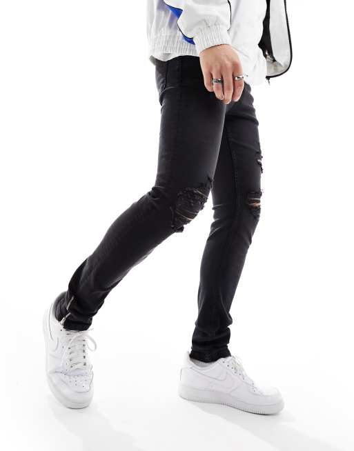 ASOS DESIGN spray on jeans with power stretch with knee rips in black