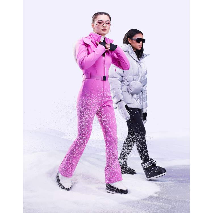 Topshop Sno ski suit with funnel neck belt in pink ASOS