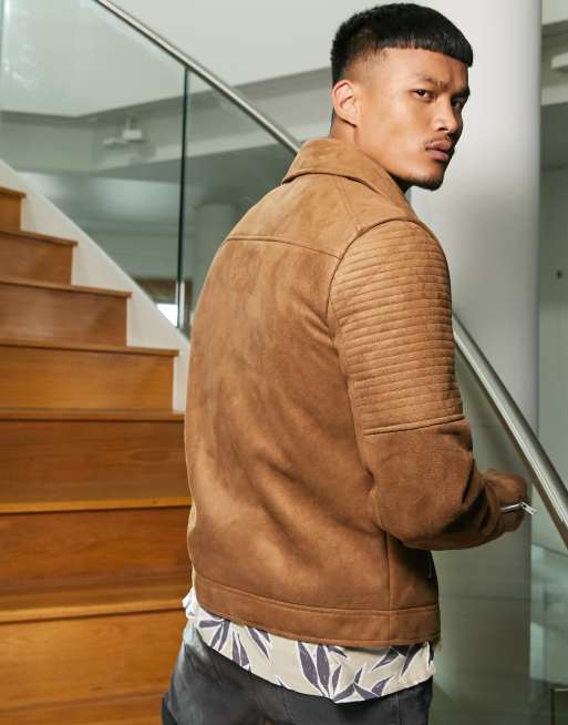 Asos suede sale biker jacket, ASOS Faux Suede Biker Jacket In Rust sale