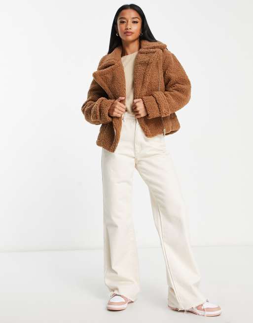Asos teddy sale borg biker, New Look Curve teddy borg aviator jacket in camel sale