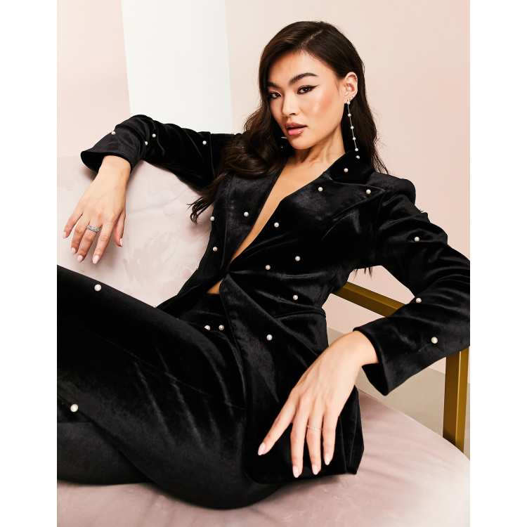 ASOS LUXE co ord pearl velvet suit fitted blazer in black