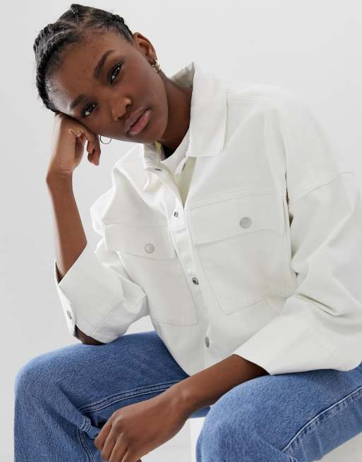 Asos white sale denim jacket, ASOS DESIGN oversized denim jacket with Berlin embroidery in white sale