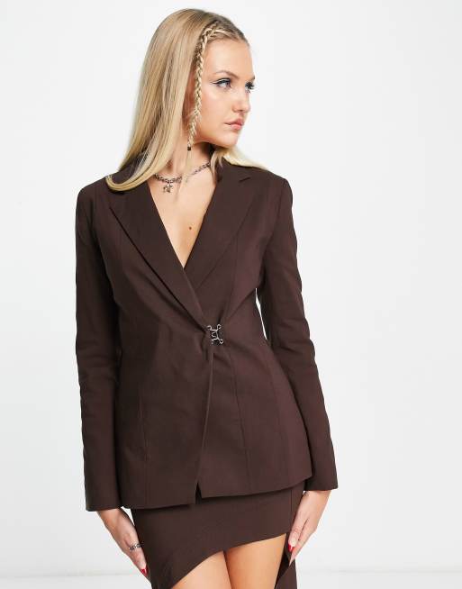 COLLUSION slim fit blazer asymmetrical skirt in brown co ord ASOS