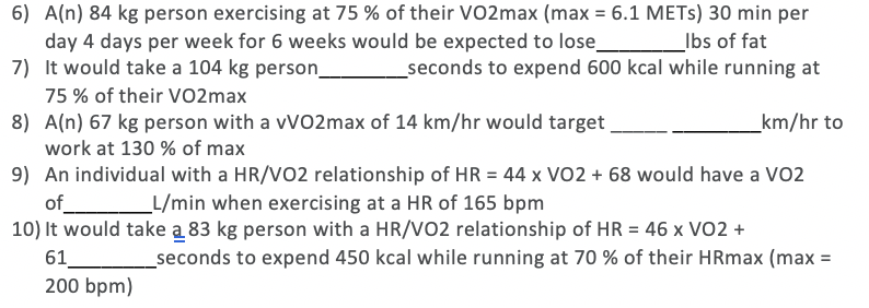 Solved 6 A n 84 kg person exercising at 75 of their Chegg