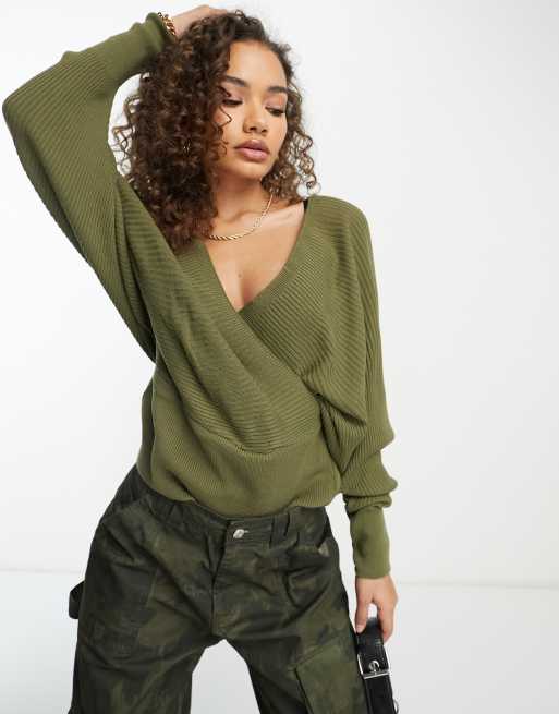 NaaNaa crossover batwing sleeve jumper in khaki ASOS