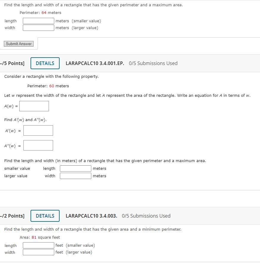 Solved Find the length and width of a rectangle that has the
