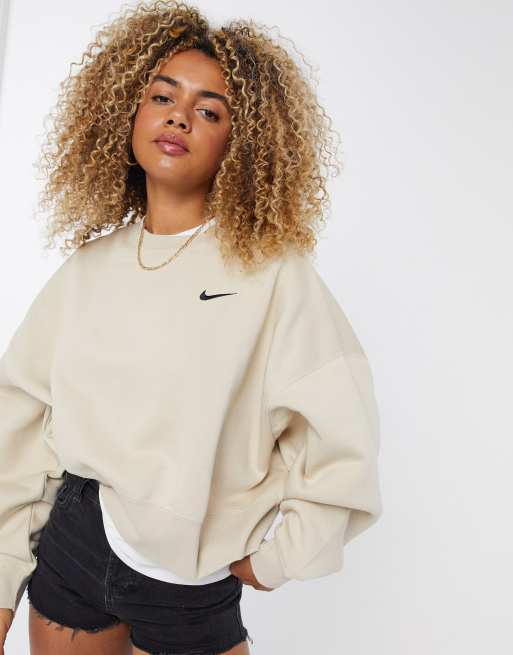 Nike Beige sweatshirt i oversize med boxig passform och liten swoosh logga
