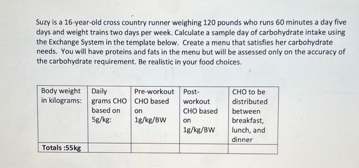 Solved Suzy is a 16 year old cross country runner weighing Chegg