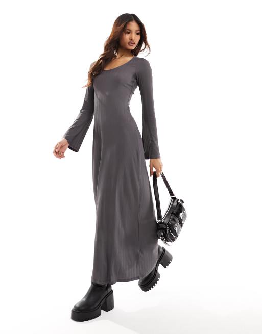 NA KD ribbed maxi dress in dark grey
