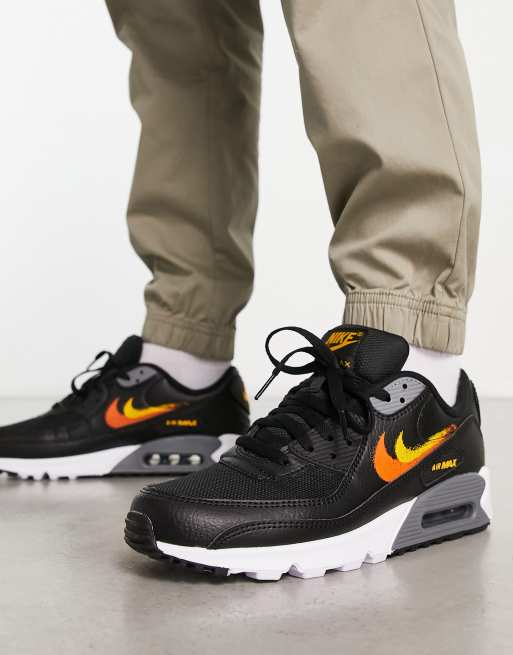 Nike Air Max 90 double swoosh spray trainers in black and orange