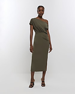 Black sale drape dress, Black drape front bodycon midi dress River Island sale